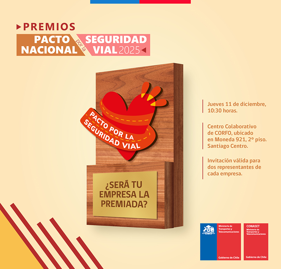 Nos llena de orgullo anunciar que hemos sido galardonados en los Premios Pacto por la Seguridad Vial, organizados por la Comisión Nacional de Seguridad de Tránsito (CONASET), en la categoría “Sensibilización Pública” gracias a nuestro Congreso Internacional de Seguridad Vial Traffic 2025. Este reconocimiento premia iniciativas que promueven la conciencia sobre la importancia de la seguridad vial y contribuyen al cumplimiento de la Estrategia Nacional de Seguridad de Tránsito 2021-2030.